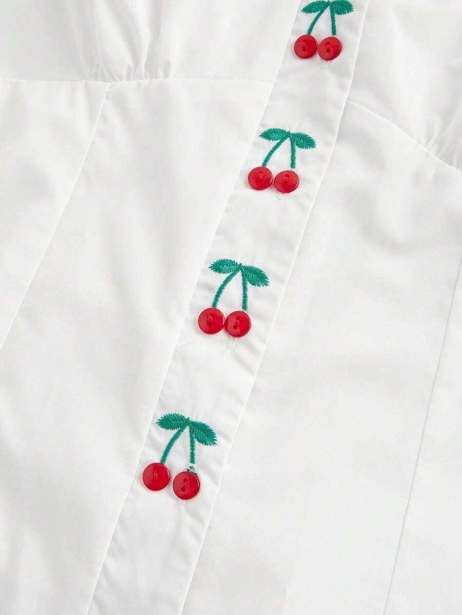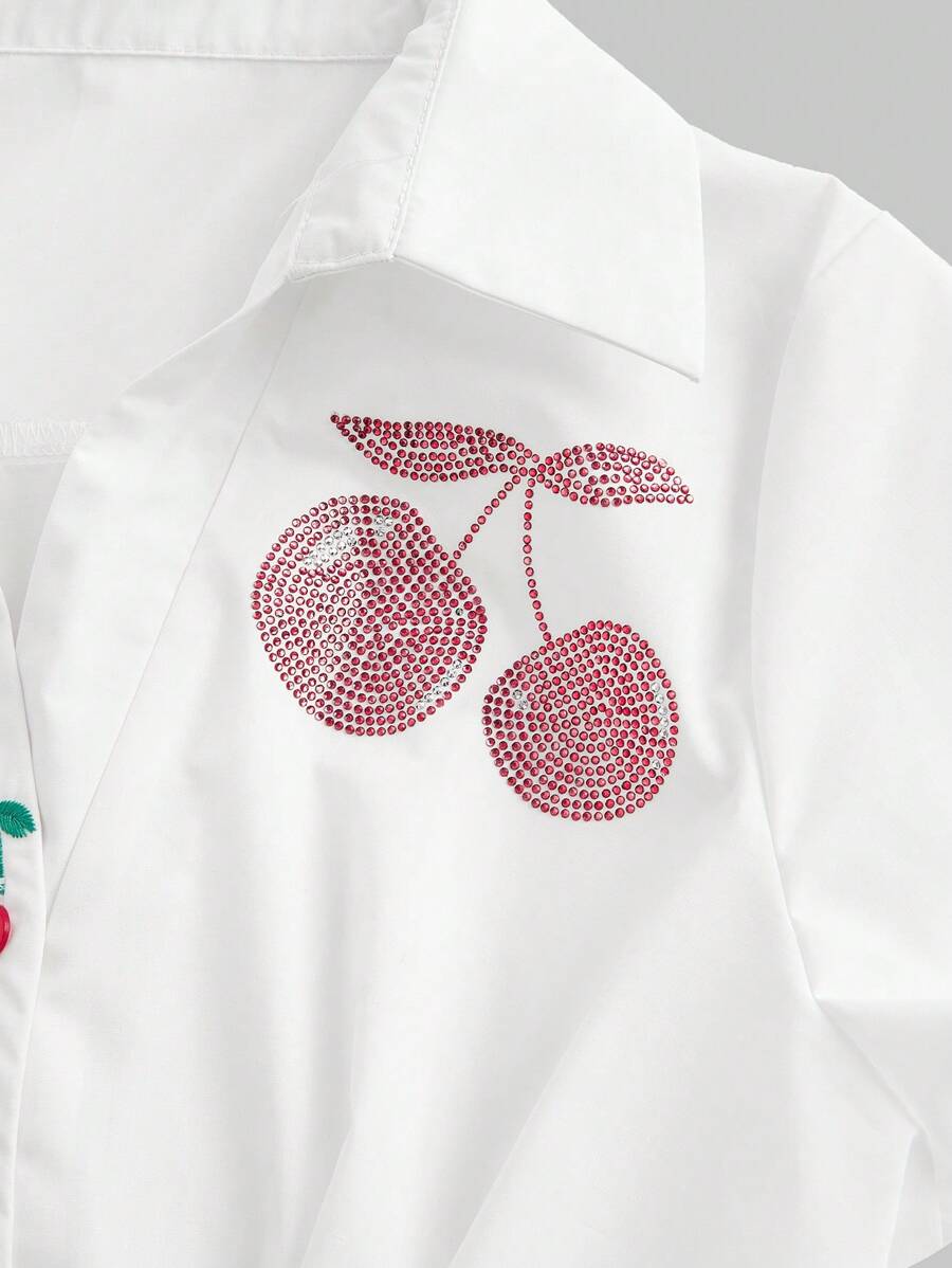 Sweetness Camisa de mujer con botones de cereza decorada con rhinestones