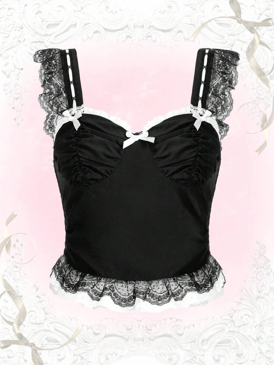 Sweetness Camisetas y Tops de Tirantes de Mujer Lazo Encaje en contraste Lazo delantero Liso Casual
