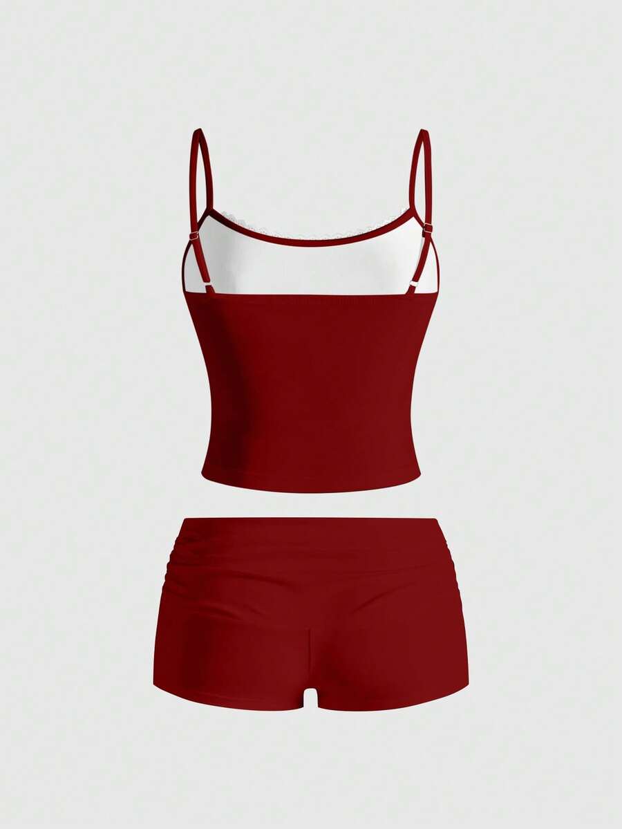 Sweetness Conjunto de 2 piezas de camiseta y pantalones cortos sexy con estampado de corazón, melocotón y cereza para mujeres