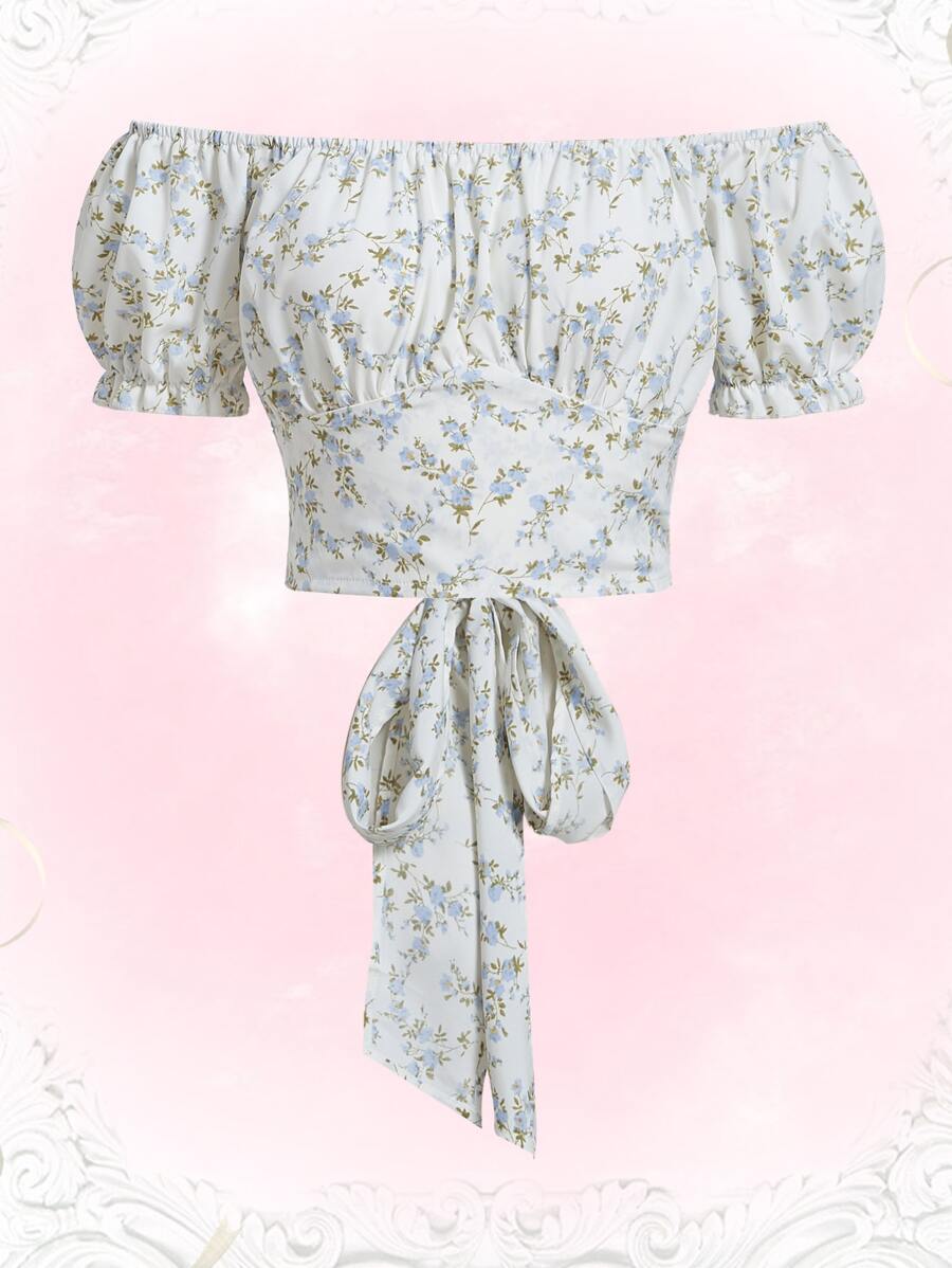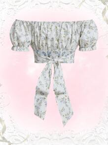 Camisa crop con estampado floral de hombros descubiertos de espalda abierta con cordón