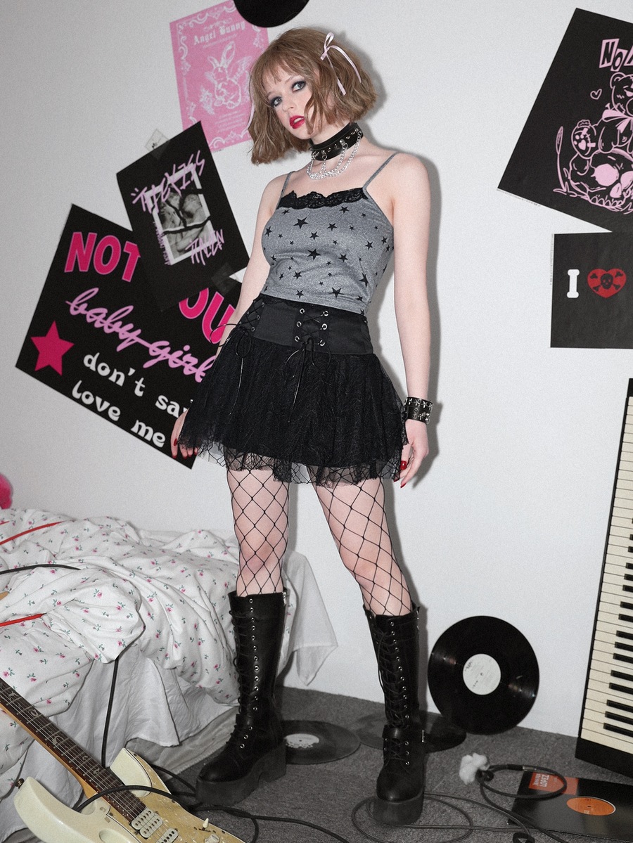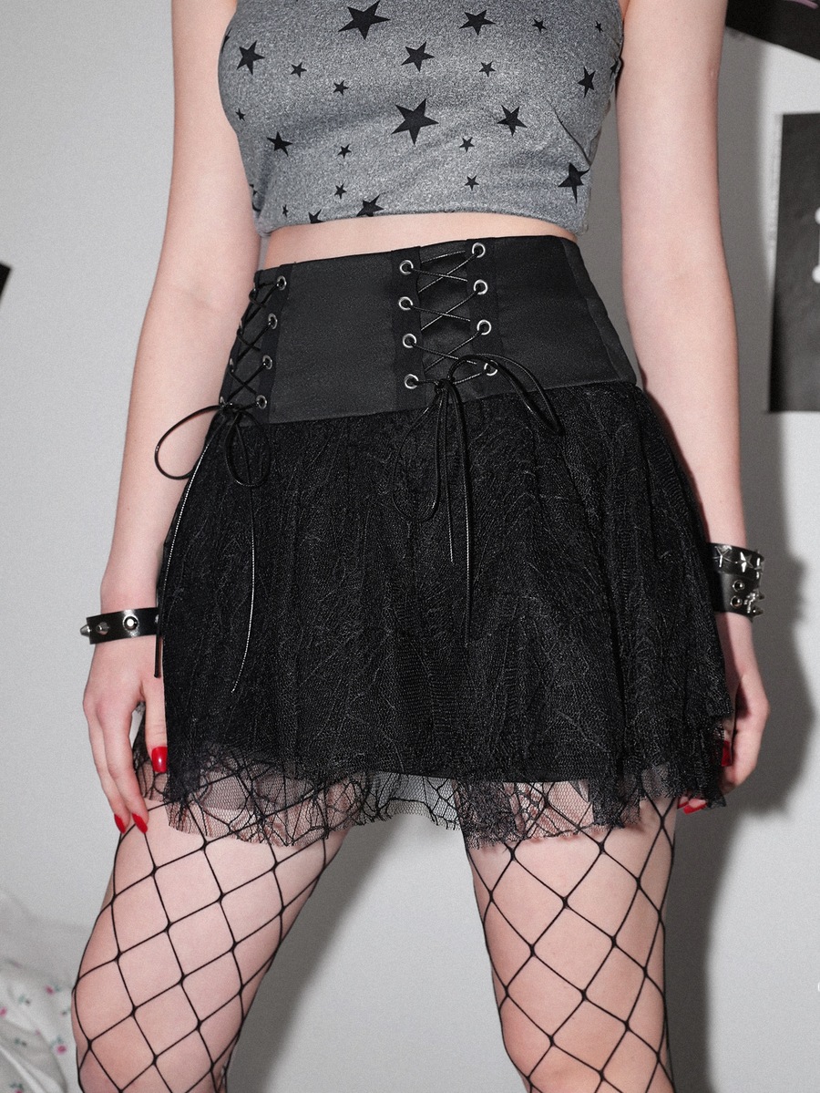 Faldas de Mujer Encaje en contraste Lazada Ojales Liso Casual