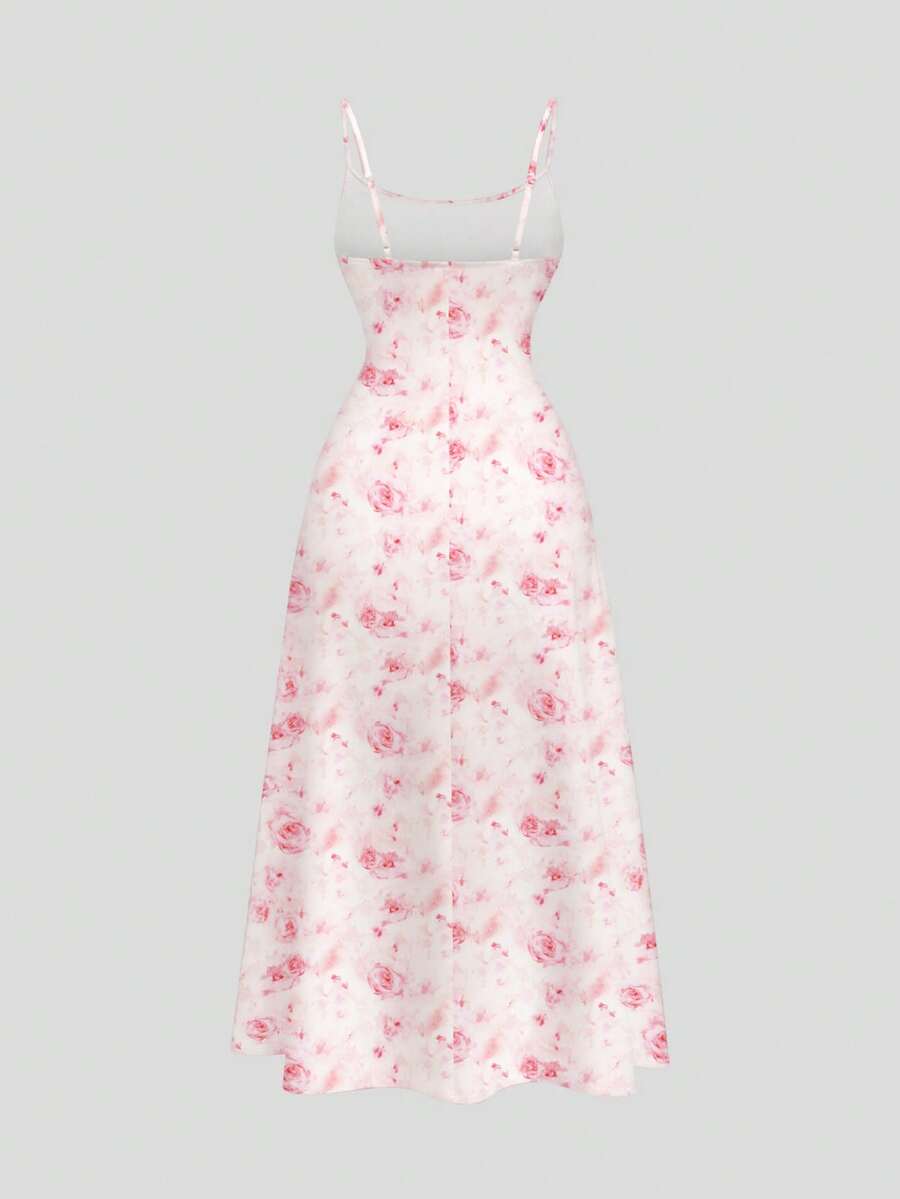 Sweetness Vestido de línea A con volantes con estampado de rosas romántico, elegante y dulce vestido sexy de verano para mujer