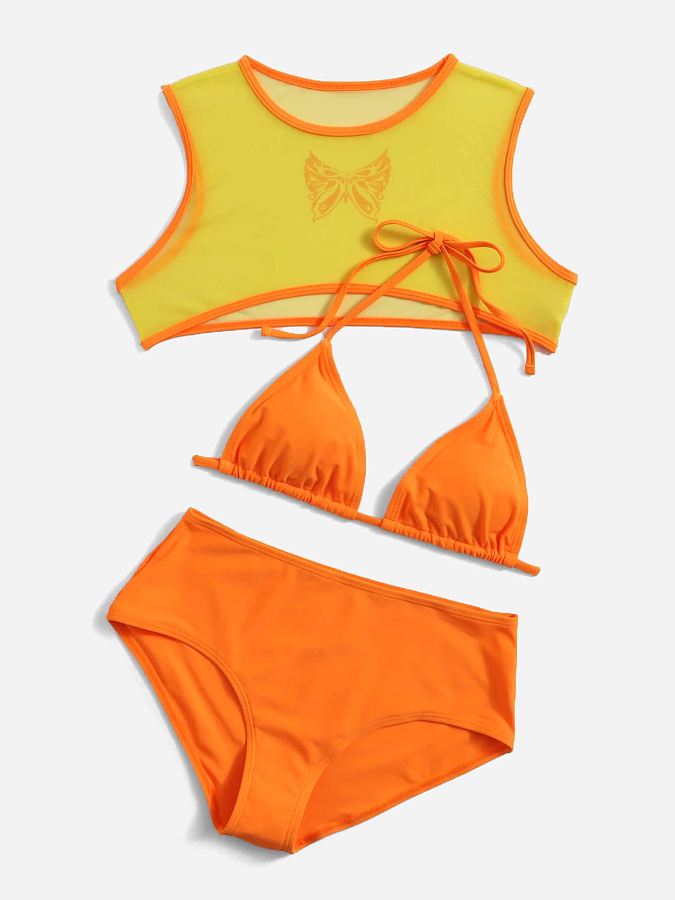 Sweetness Conjunto de 3 paquetes de bikini gráfico con cubierta por Romwe X Gabiciamp