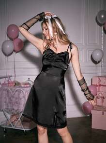 Vestido de tirantes unicolor fruncido bajo con abertura