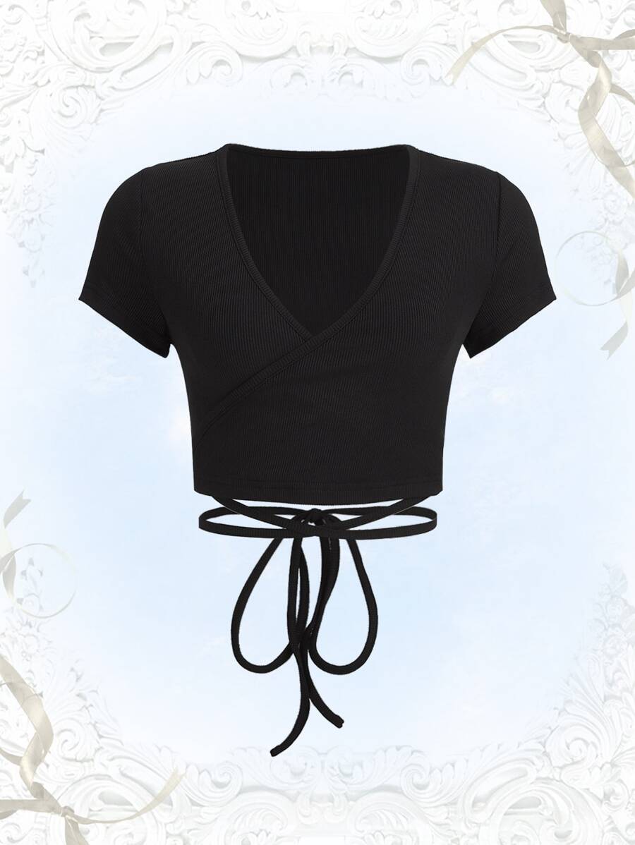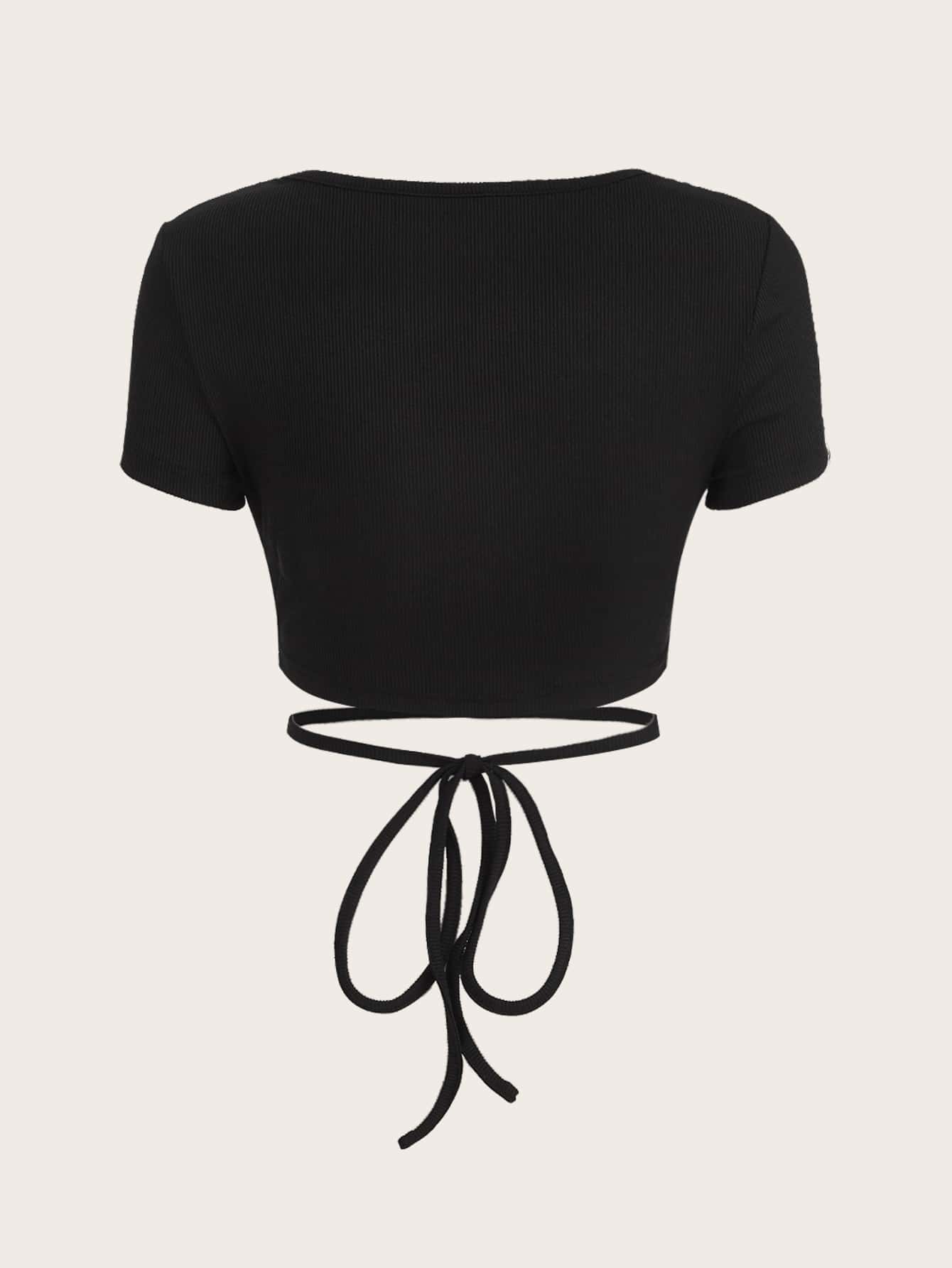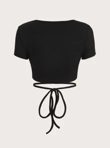 Sweetness Camiseta crop unicolor cruzado con cordón trasero