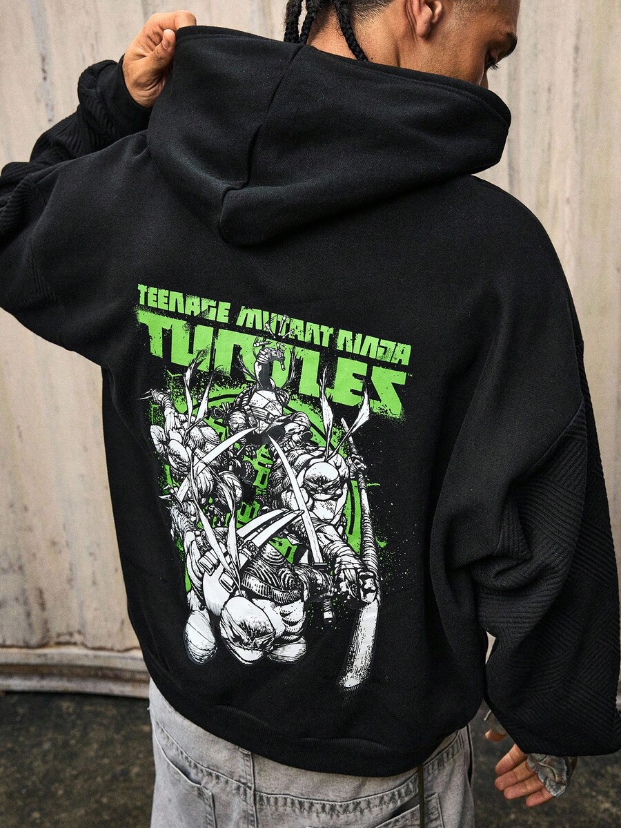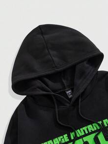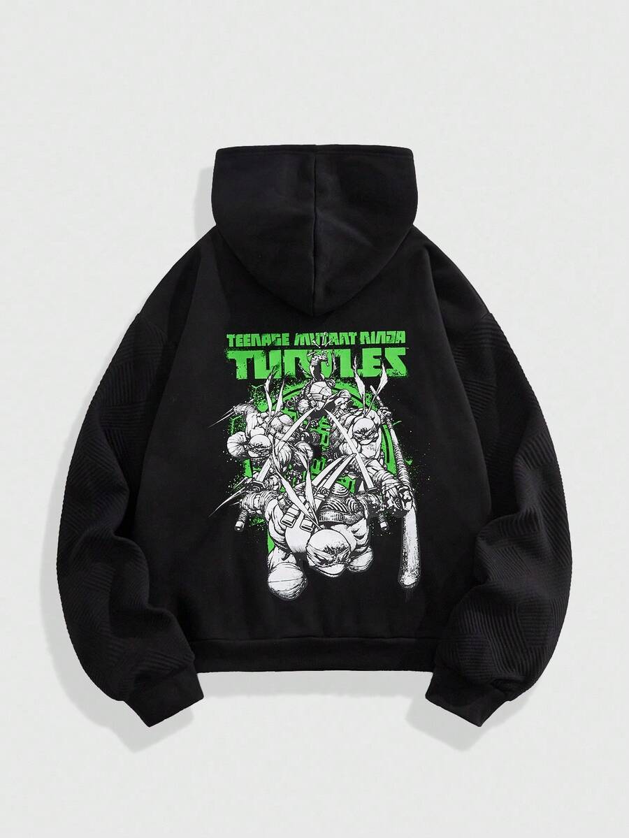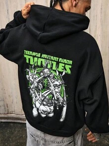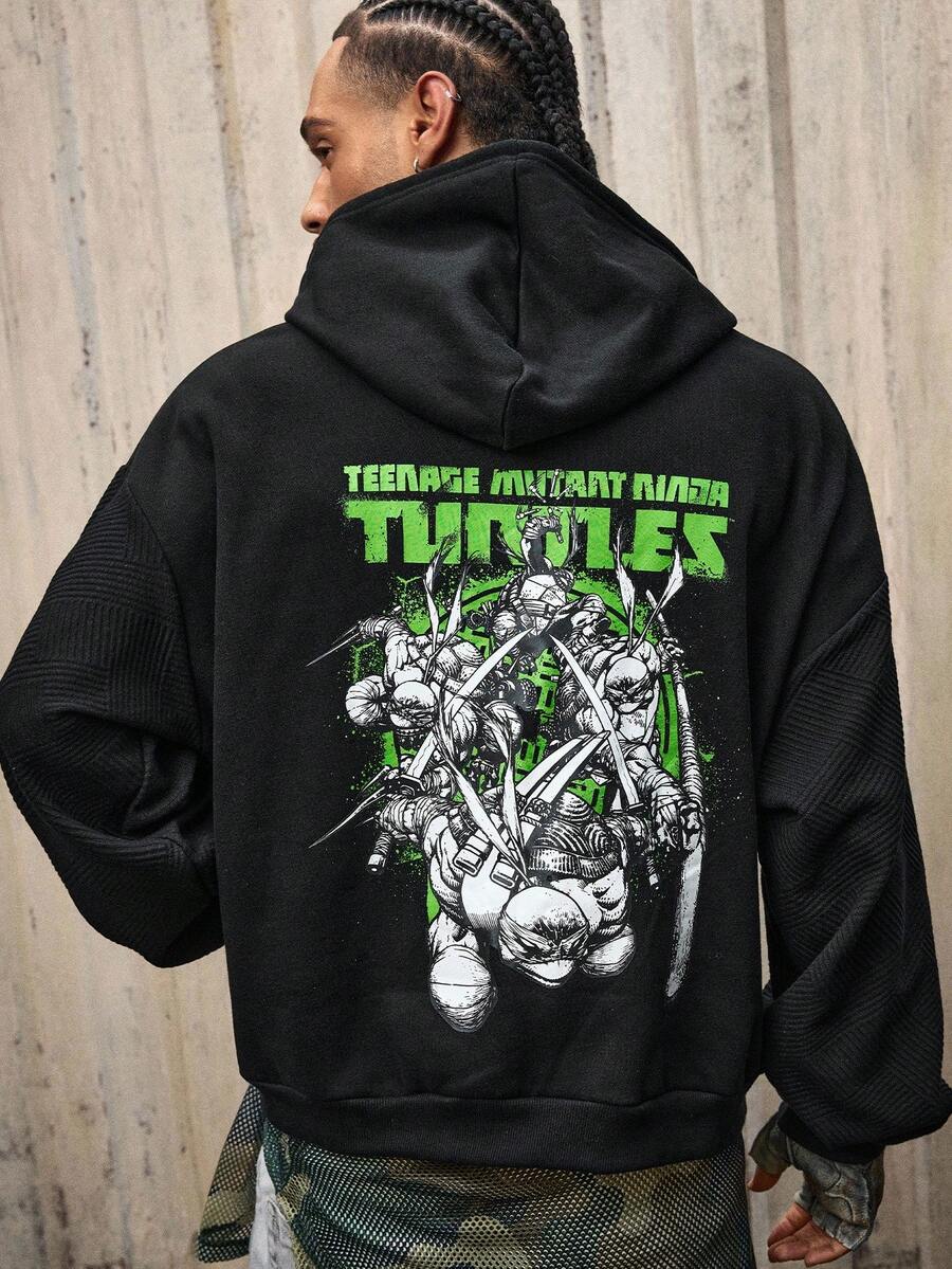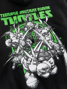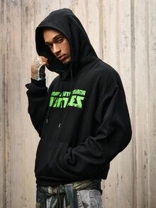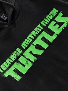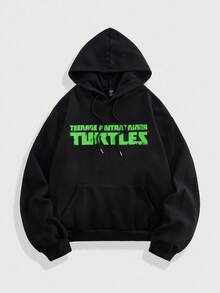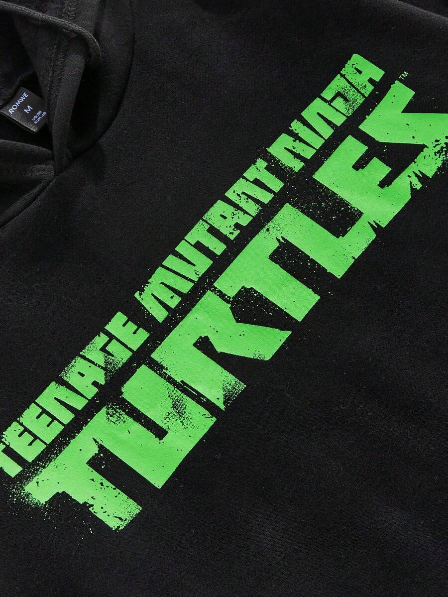TEENAGE MUTANT NINJA TURTLES X ROMWE Sudadera con capucha casual de hombre con estampado de letra y tortuga, otoño