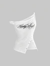 Grunge Punk Camiseta de mujer con estampado de vid, contraste de color, asimétrica de hombro, tipo halter con lazo, estilo gyaru, para verano, playa, conciertos, festivales, raves, streetwear, sexy, Y2K Goth Camiseta gráfica para mujer con diseños de jardín botánico gótico, setas, sol, luna, estrellas, calavera hippie, murciélago, polilla, mariposa y rosa, adecuada para primavera/verano, Día de San Valentín