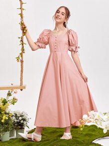 Vestidos para niñas Lazo Volante Cremallera Botón delantero Liso Elegante