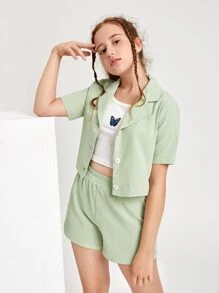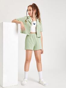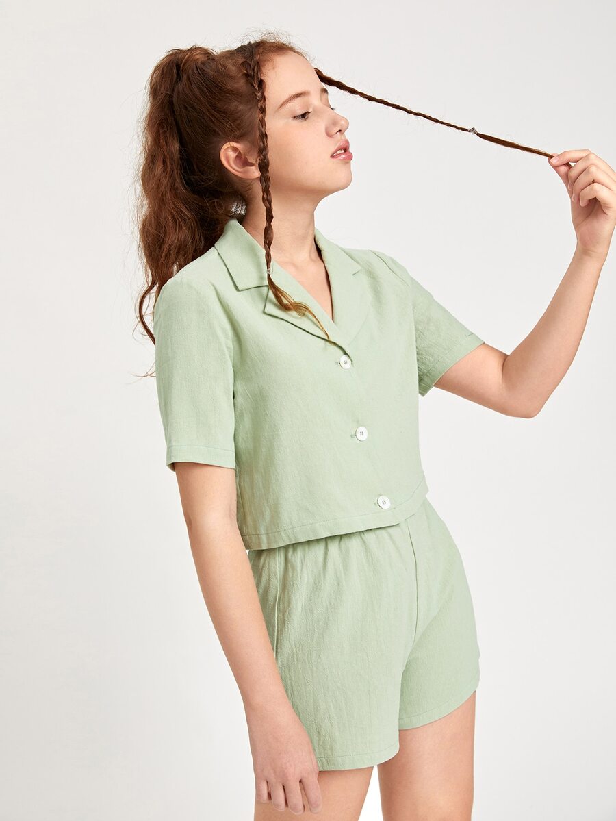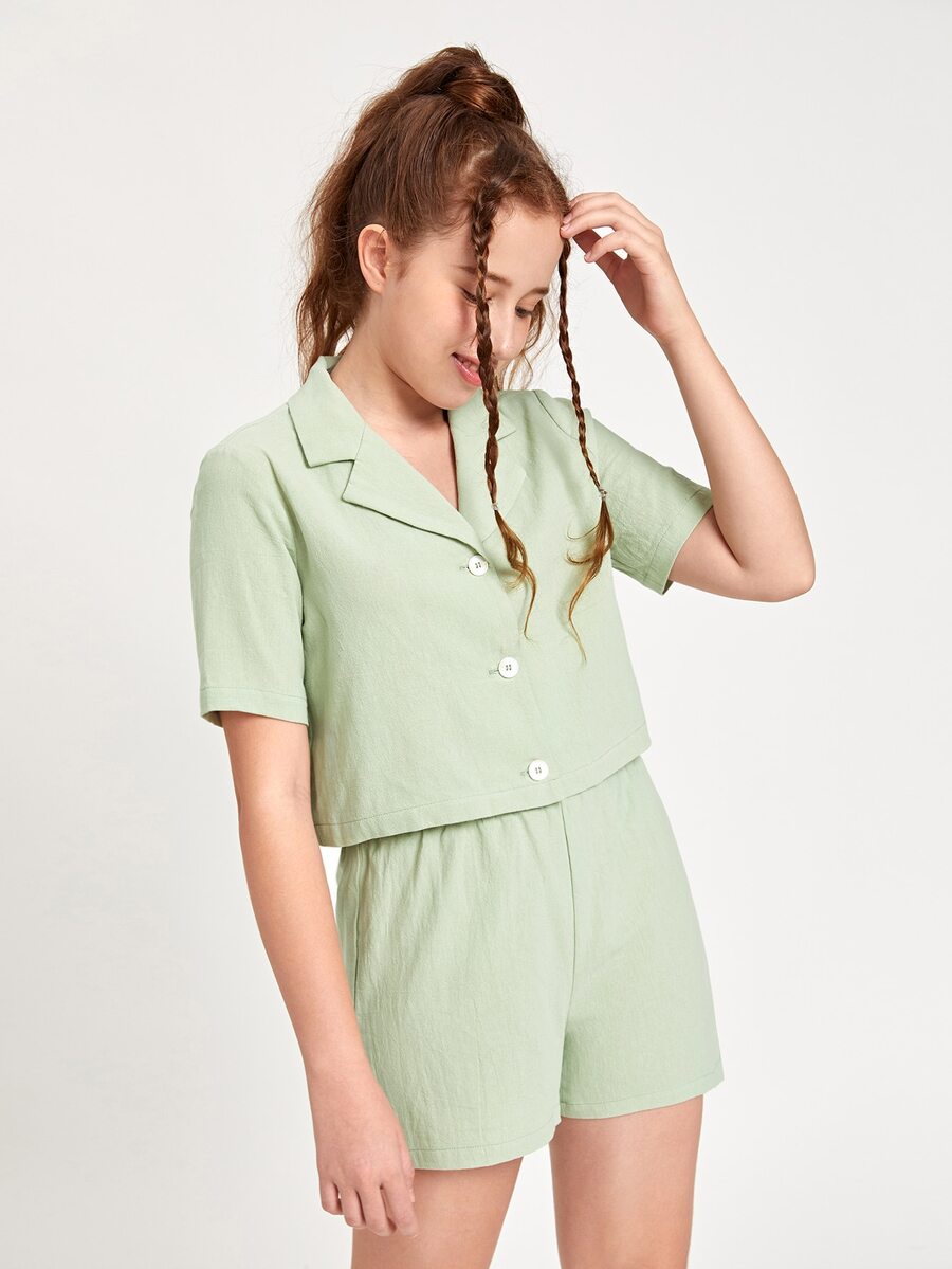 Chicas adolescentes conjunto Blusa con botón & Shorts