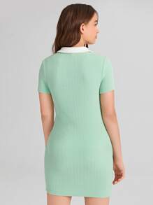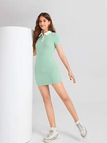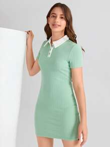 Chicas adolescentes Vestido ajustado de cuello en contraste tejido de canalé
