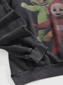 Teletubbies X ROMWE Sudadera con capucha casual de mujer con patrón de dibujos animados desgastado y vintage, otoño