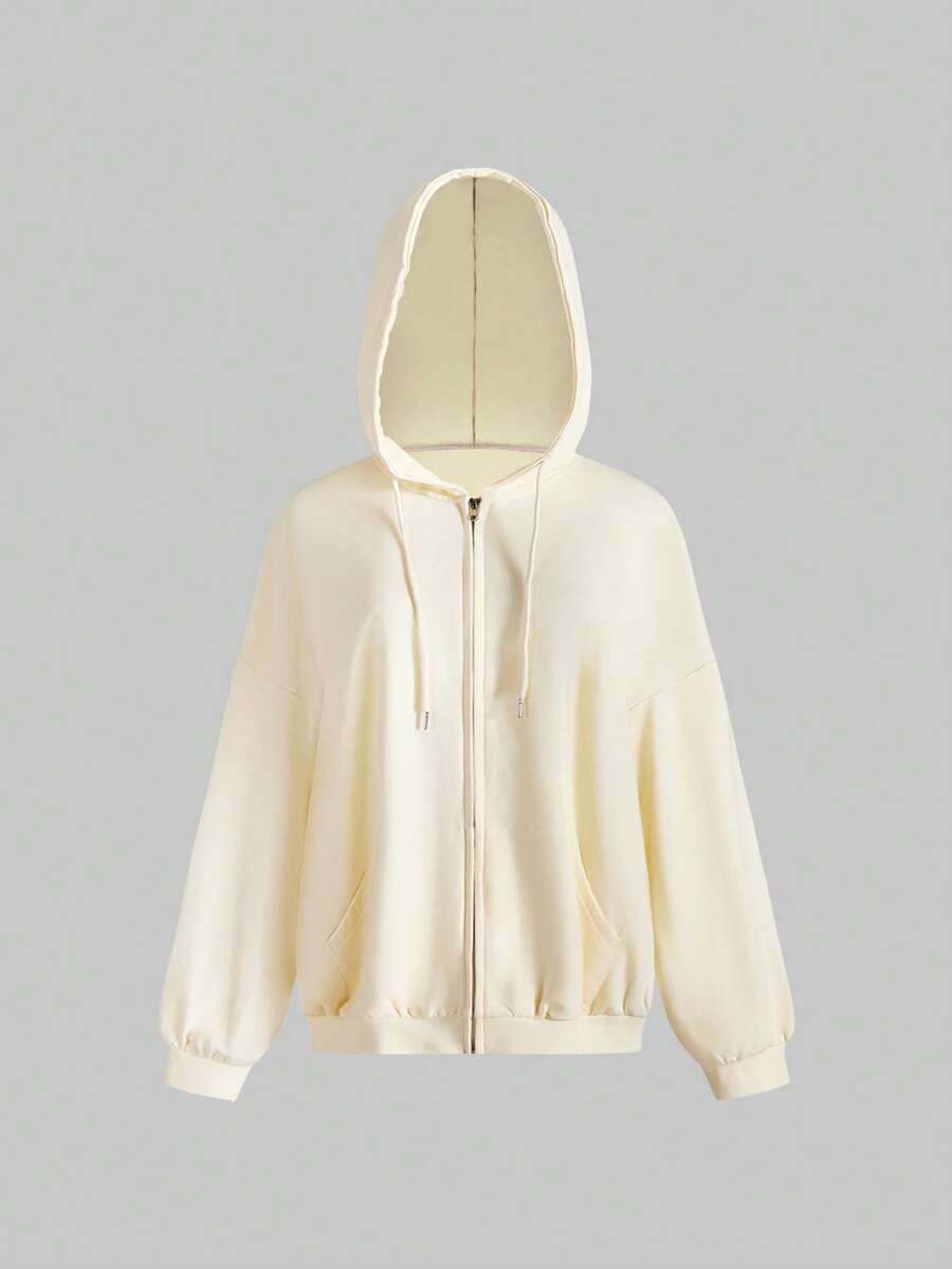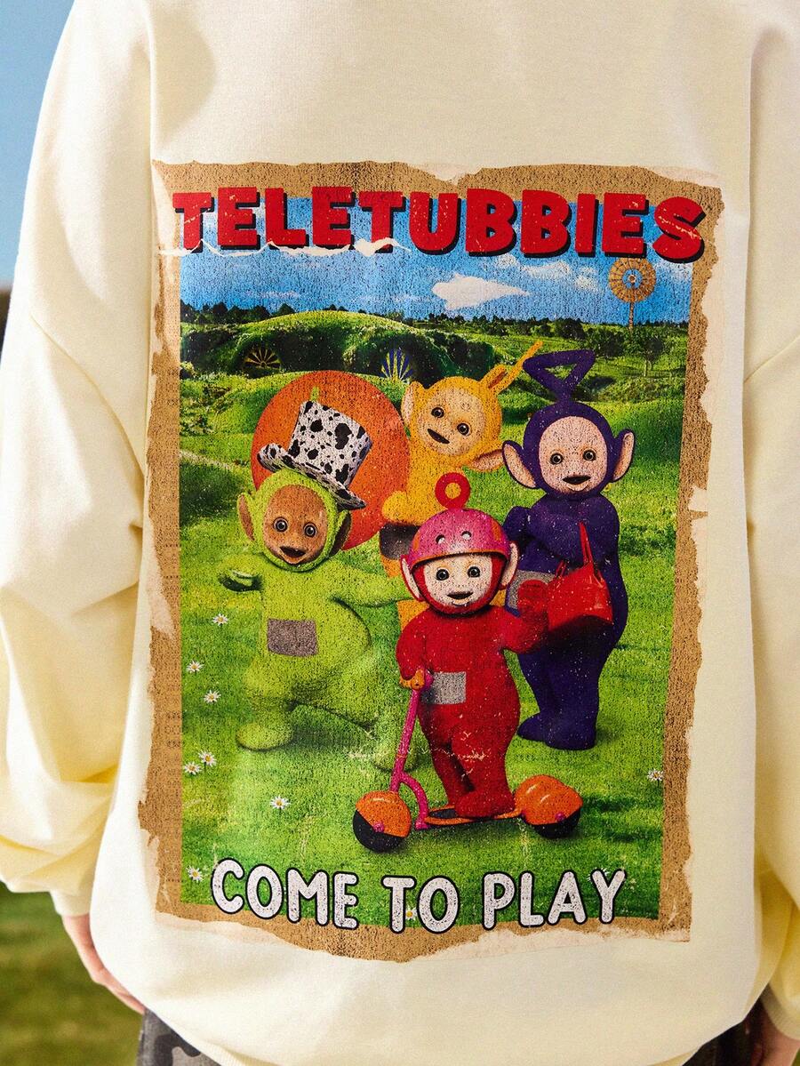 Teletubbies X ROMWE Sudadera con cremallera con lindo estampado de dibujos animados en beige para mujer