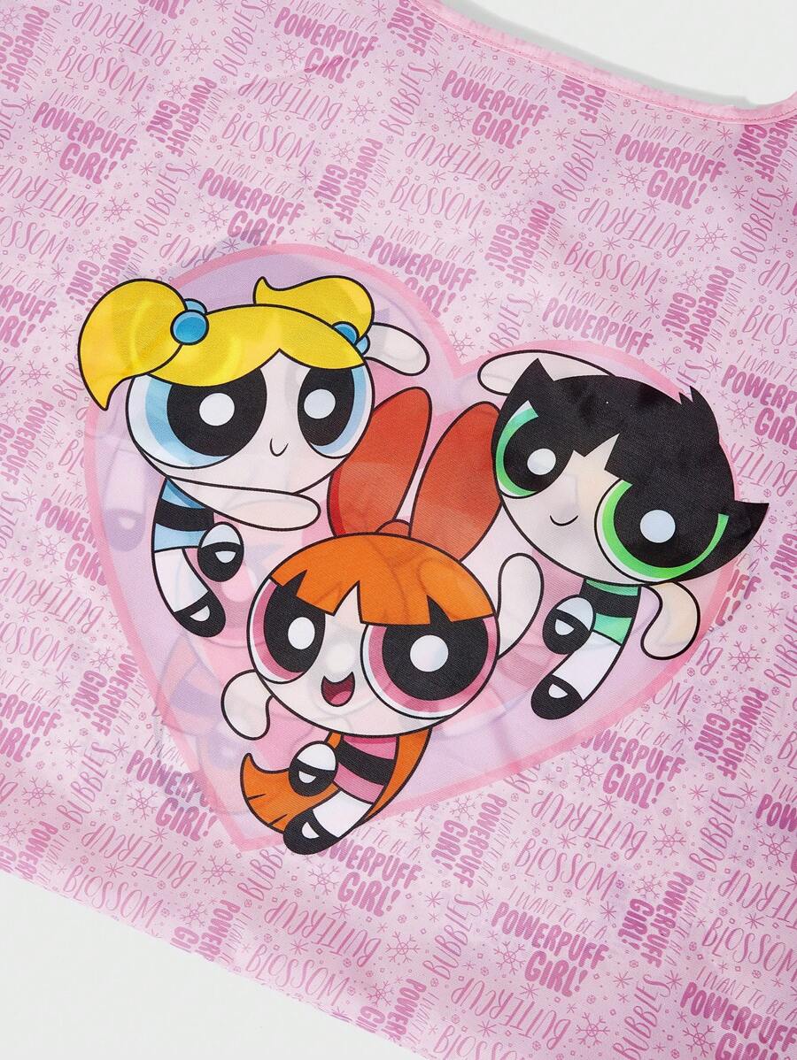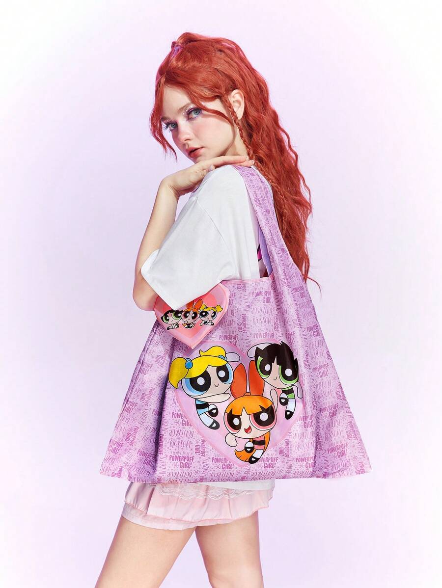 The Powerpuff Girls | ROMWE Bolsa de compras amplio dulce con letra con estampado de dibujos animados para compras