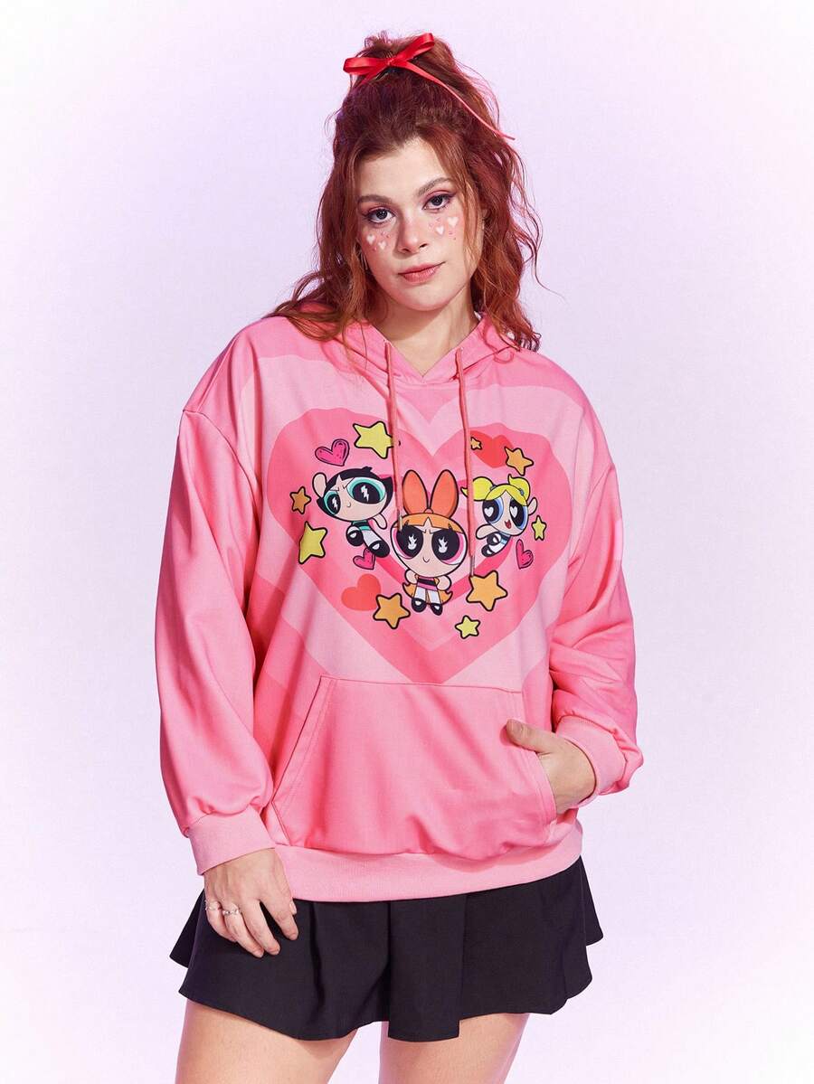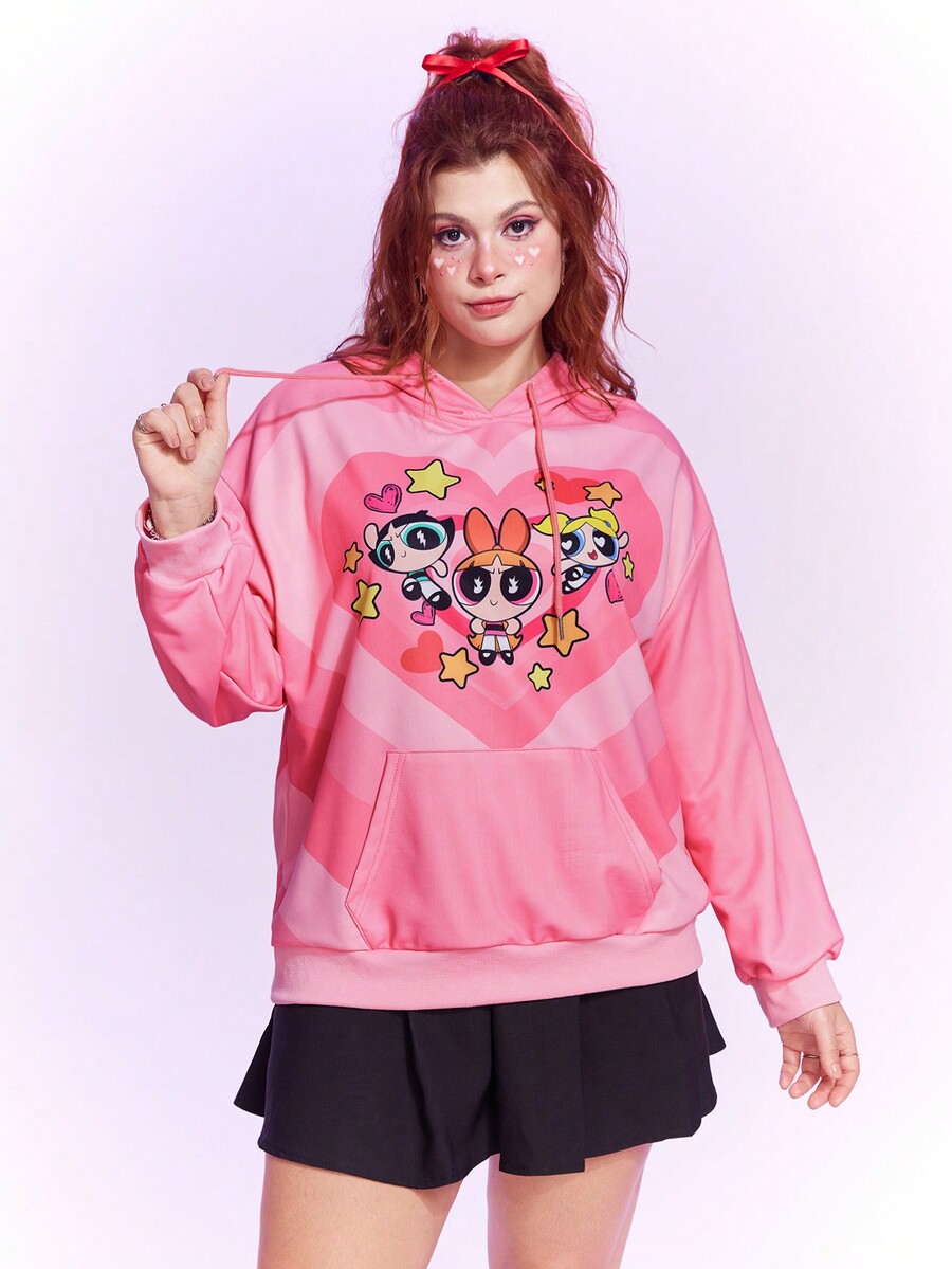The Powerpuff Girls | ROMWE Talla grande Capucha figura & con estampado de estrella de hombros caídos
