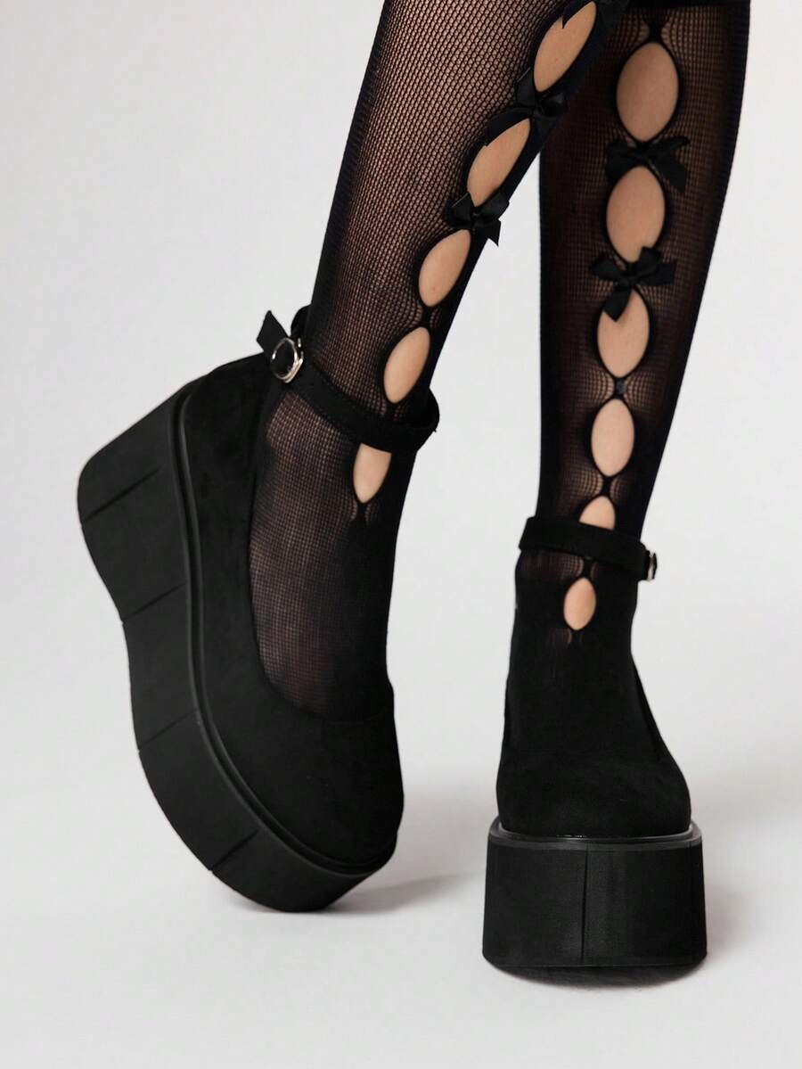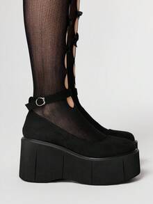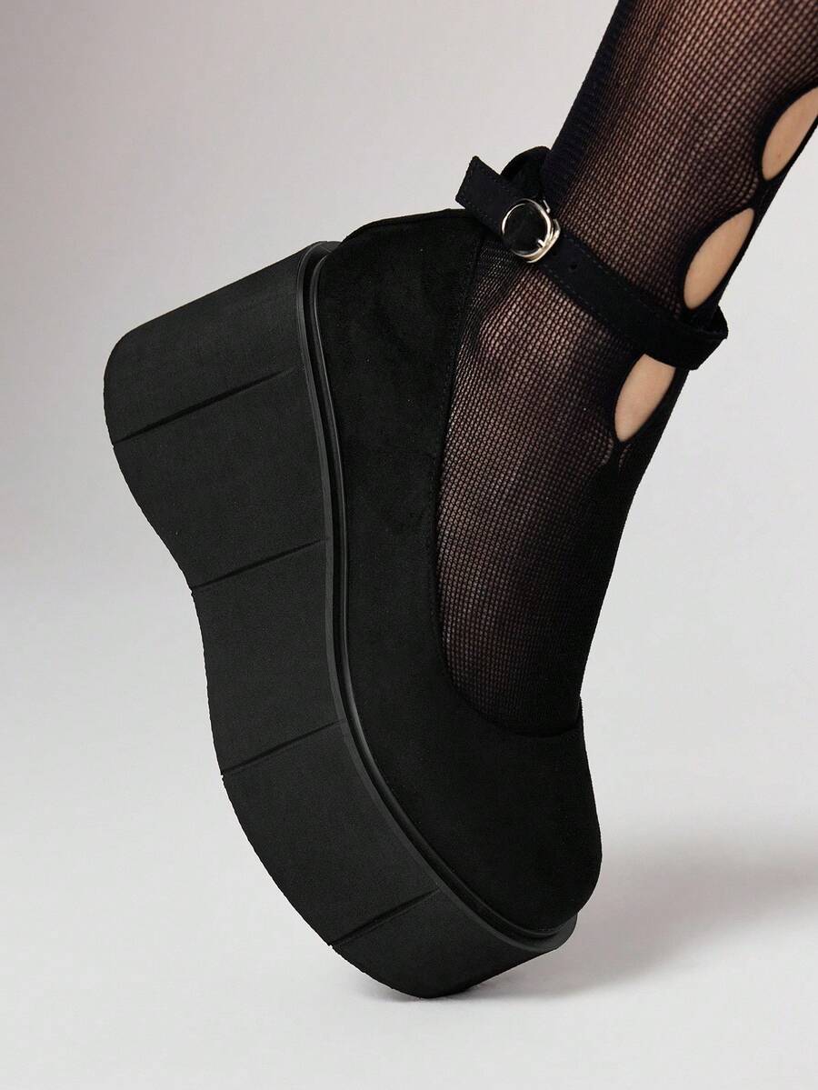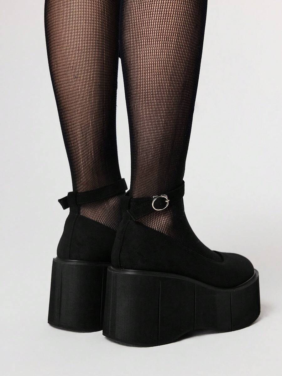 Goth Zapatos planos de mujer con suela gruesa, puntera redonda, hebilla, estilo punk gótico, cómodos y casuales