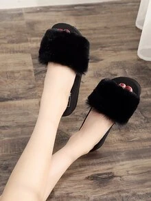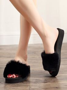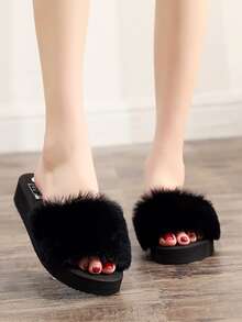 Chanclas de suela gruesa con pelo sintético