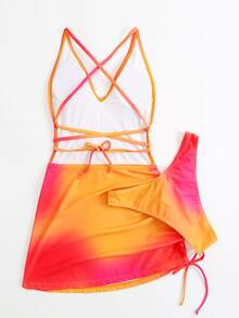 Vestido de baño con espalda al aire y Bottom de bikini con efecto tie-dye, para vacaciones de verano en la playa