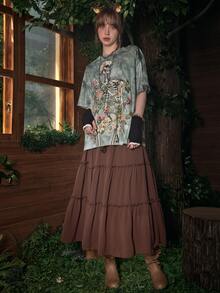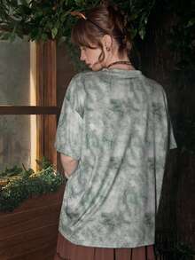 Fairycore Camiseta de hombros caídos de tie dye estampado floral & de esqueleto