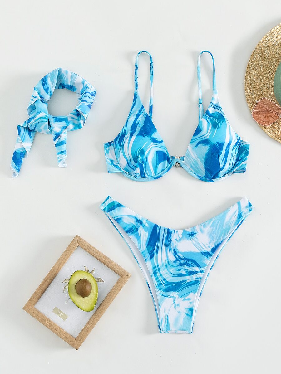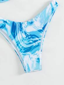 Conjunto de bikini de playa de verano teñido con diseño y corte alto con coletero a juego