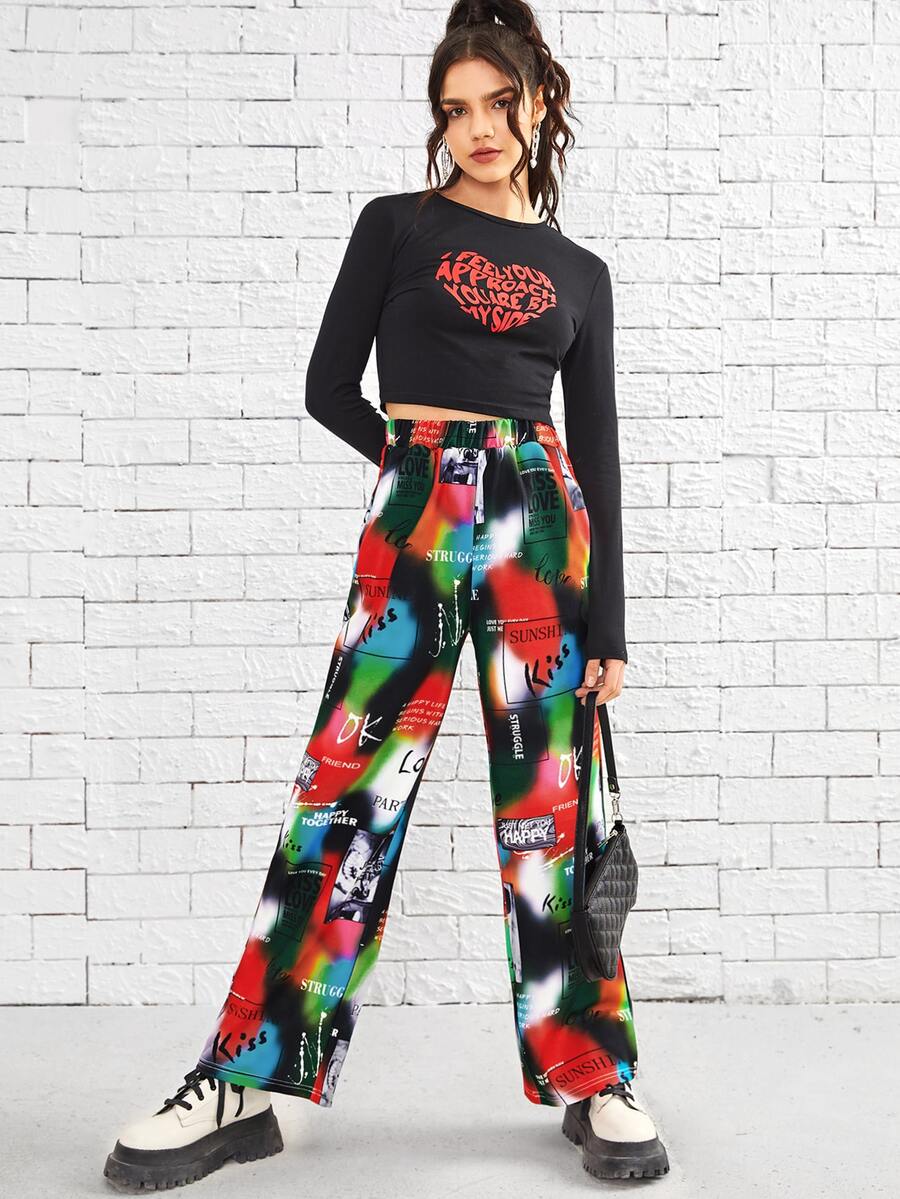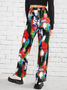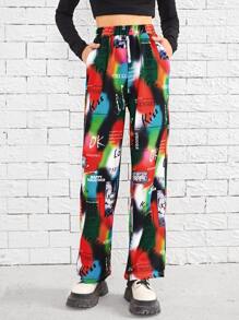 Pantalones de tie dye con estampado de letra de cintura elástica