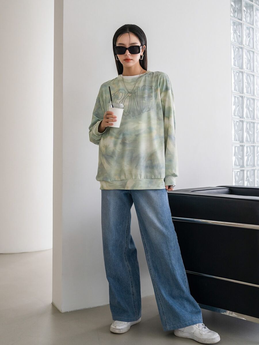 Sudadera de tie dye con estampado de letra
