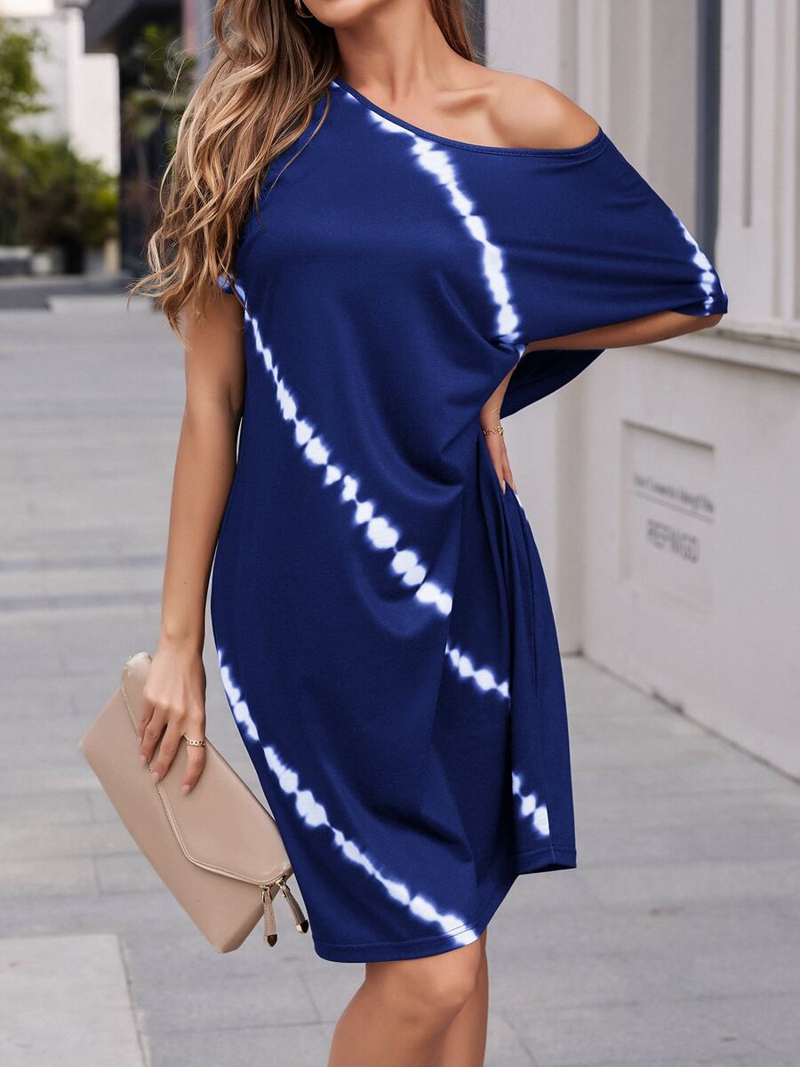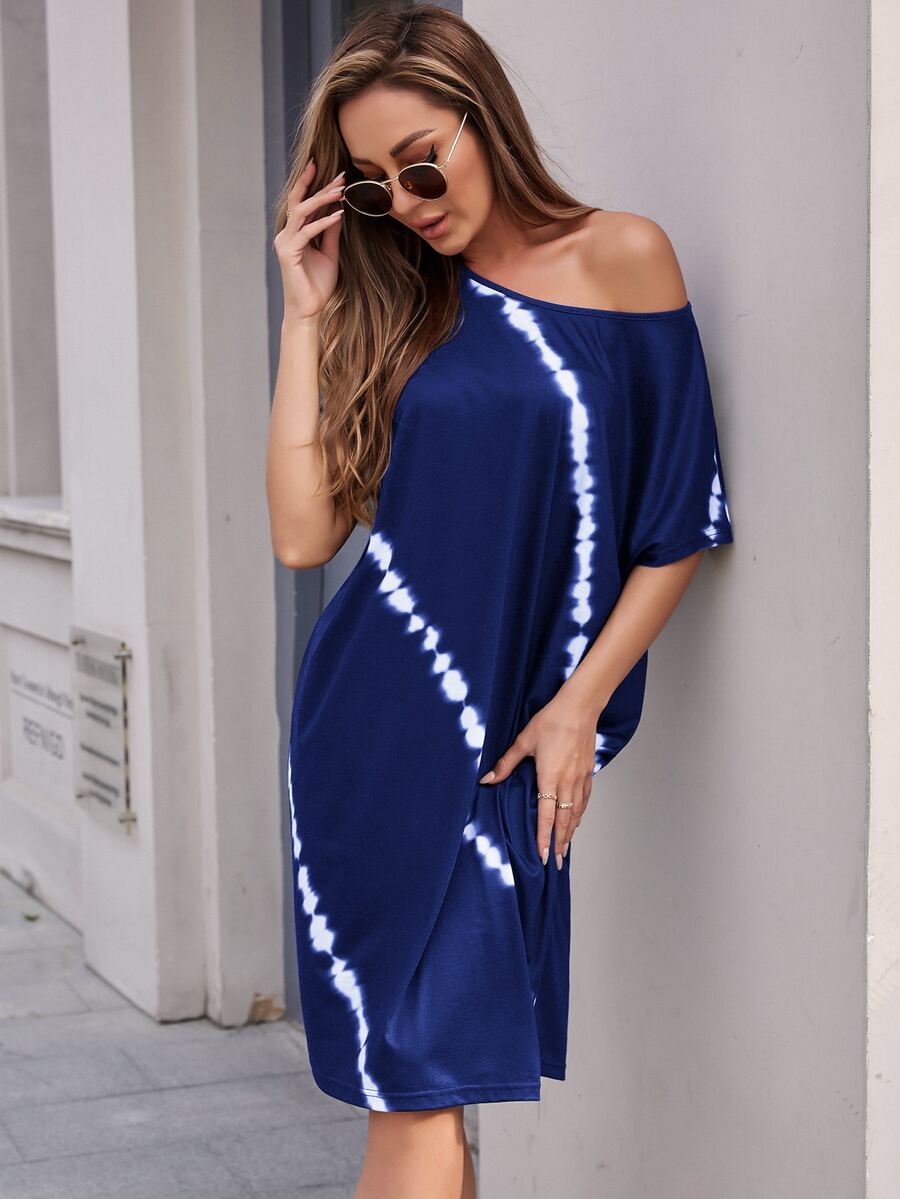Vestido camiseta de tie dye de hombros caídos