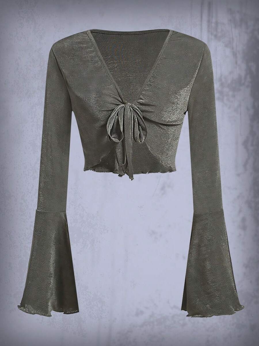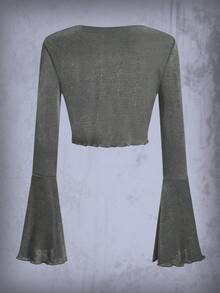 Goth Top con cordón delantero ribete en forma de lechuga de manga con volante