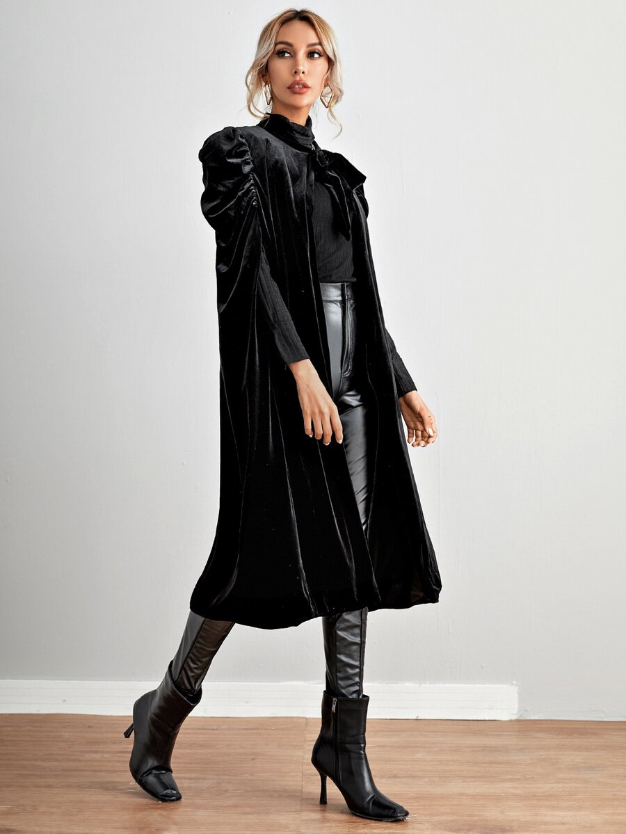 Chaqueta capa de terciopelo de manga farol con cordón delantero