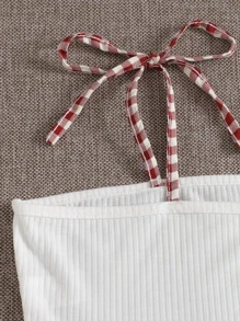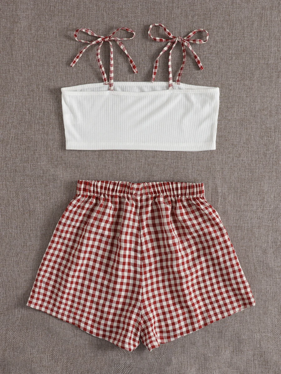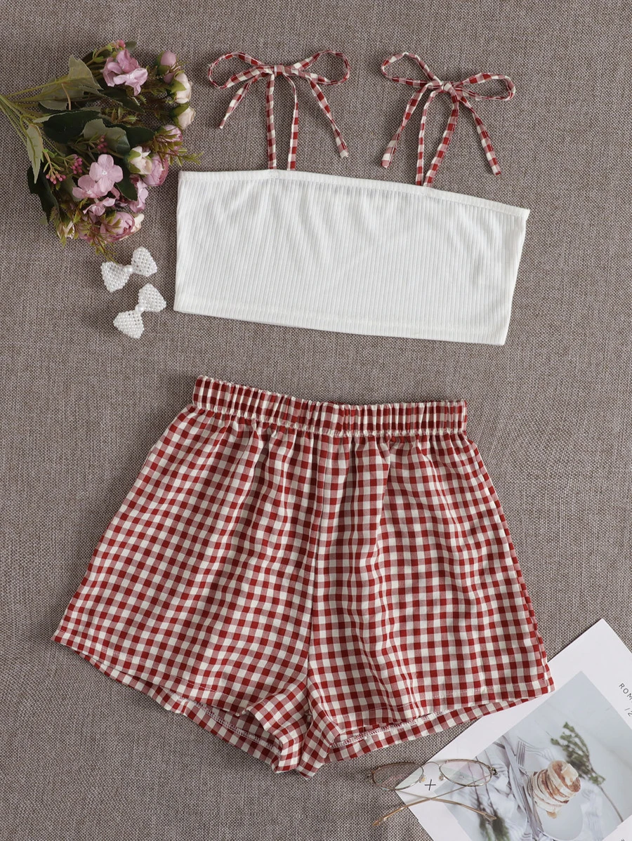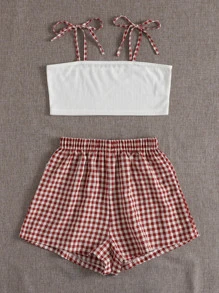 Conjunto de pijama top con tira con cordón con shorts de guingán