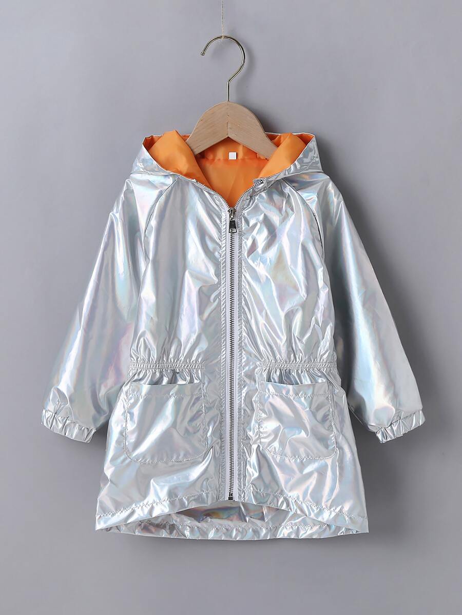 Cazadora de color metálico con capucha con doble bolsillo