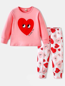 Conjunto De Pijama Gráfico De Corazón Y Eslogan Para Niñas Pequeñas