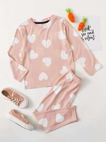 Camiseta Y Leggings Estampados Con Corazones Para Niñas Pequeñas