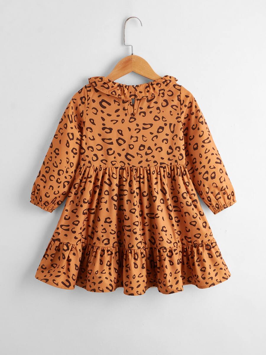 Vestido babydoll ribete con fruncido de leopardo