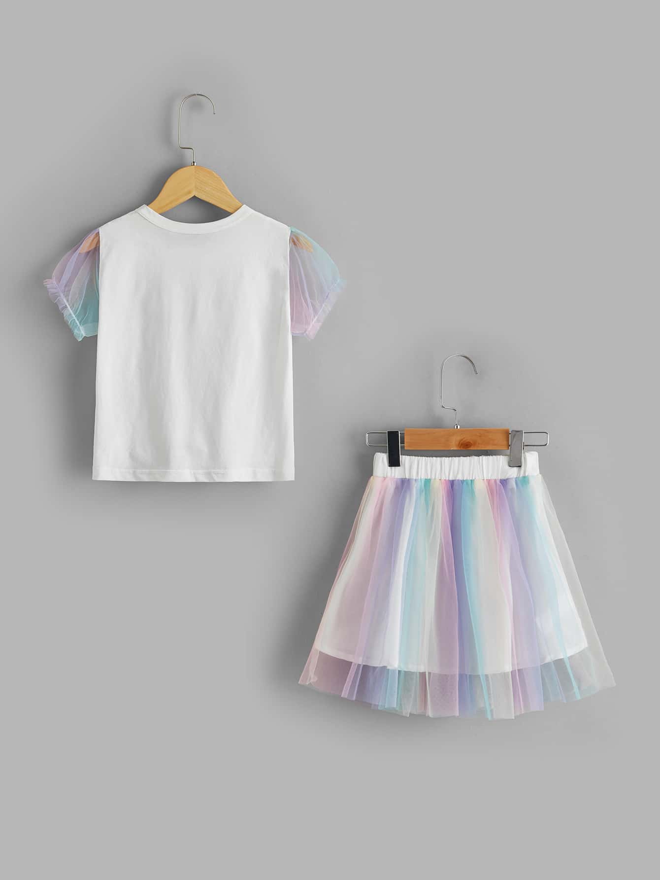 Outfits dos piezas para niña pequeña Malla en contraste Degradé Casual