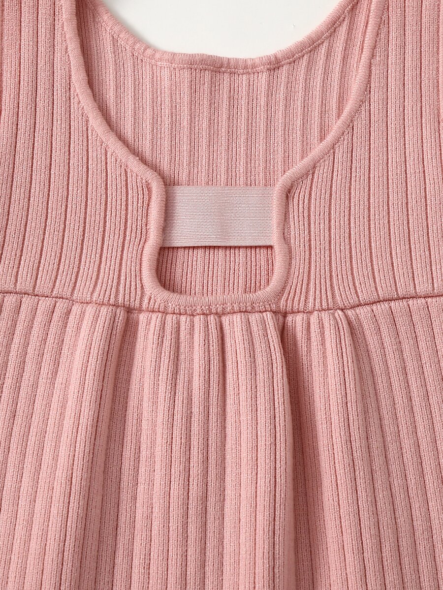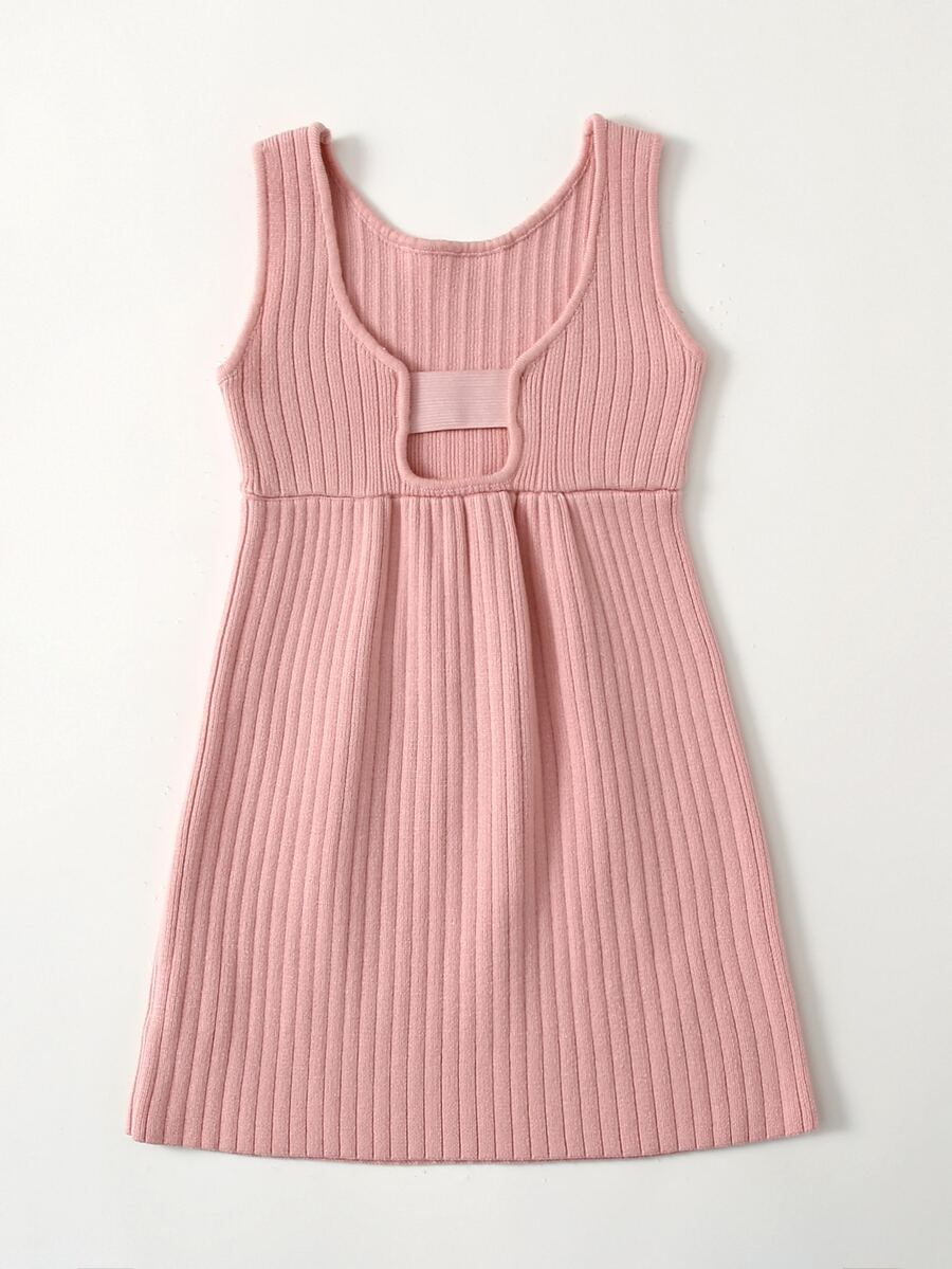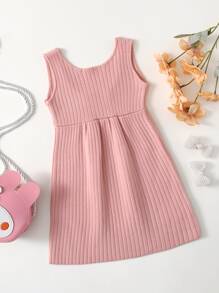 Niñas Vestido con abertura trasero tejido de canalé