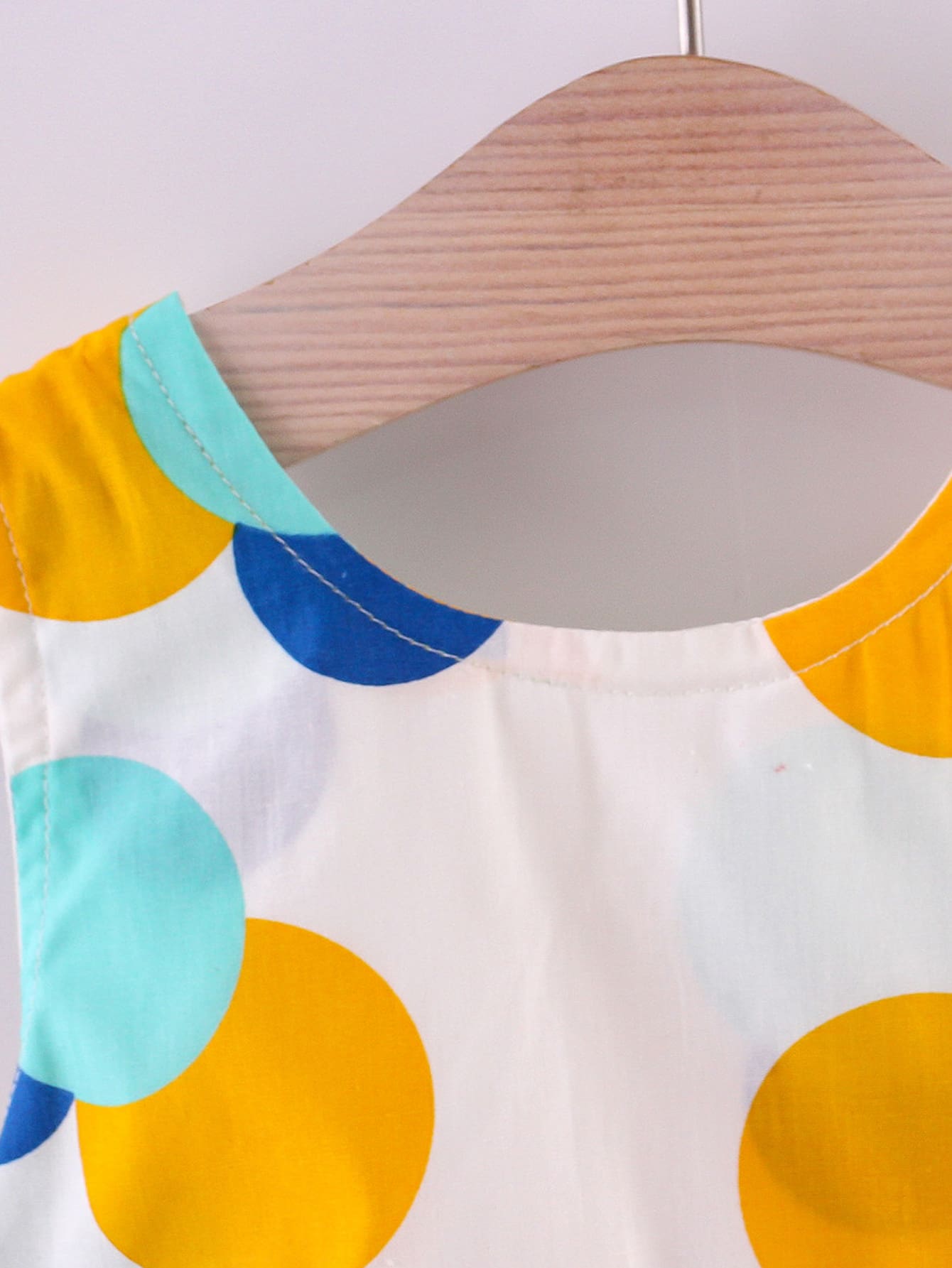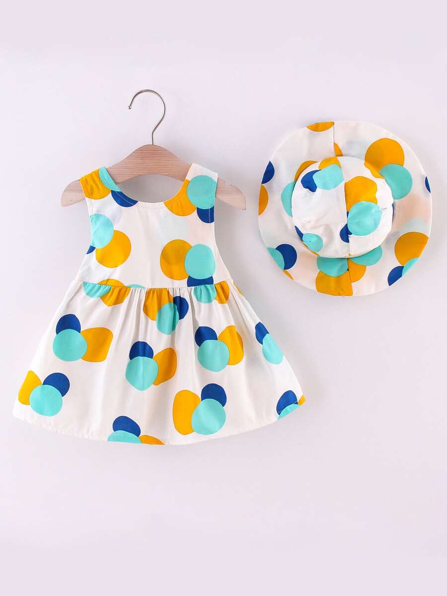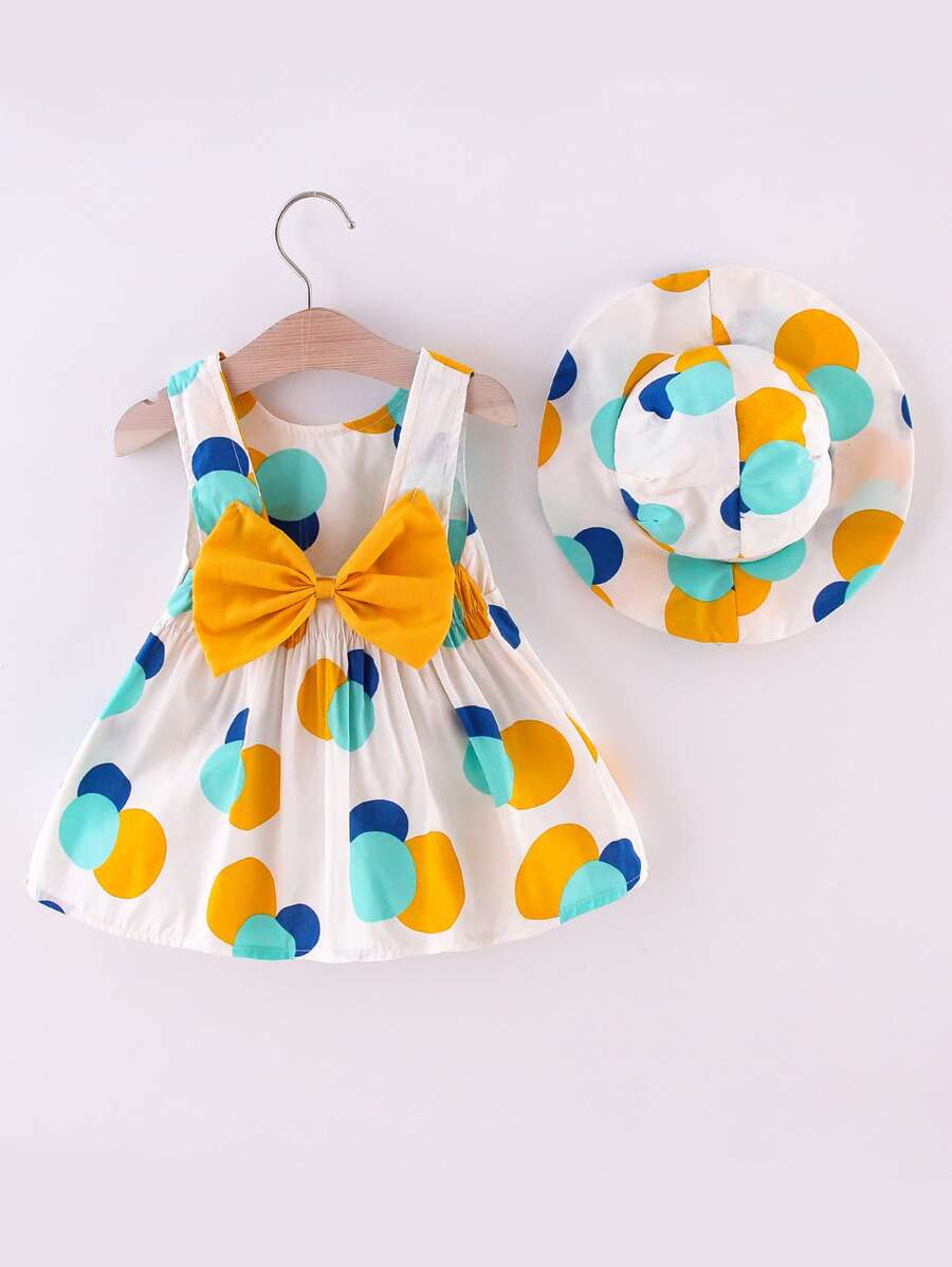 Niñitas Vestido de lunares con lazo trasero con Sombrero