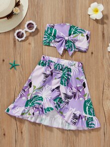 Top tubo con lazo con estampado tropical con falda