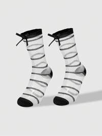 Kawaii Calcetines de malla con diseño de lazo con abertura