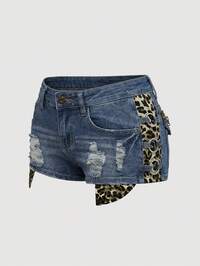 EDITION Jeans de mujer con lavado vintage desgastado y estampado de leopardo en estilo grunge-punk, pantalones vaqueros de talla grande con estilo callejero cool