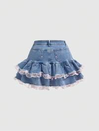 Grunge Punk Jeans asimétricos rasgados de mezclilla con cadena de metal, grommet, red y malla en estilo elegante, lindo, tropical, apretado y sexy, para vacaciones, conciertos, fiestas, tallas grandes, apropiados para verano, playa, graduación, Pascua, Nashville