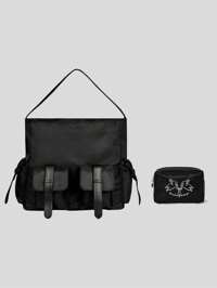 Grunge Punk Contrast Color Bat & Star Pattern Large Capacity Foldable Tote Bag With Coin Purse