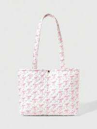 Kawaii 1 pieza Bolso de mano de mujer con estampado de lazo y bordado de rombo, de moda y portátil