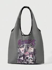 Goth 1 pieza Bolso de lona reutilizable impreso, diseño de bolso de hombro, adecuado para compras