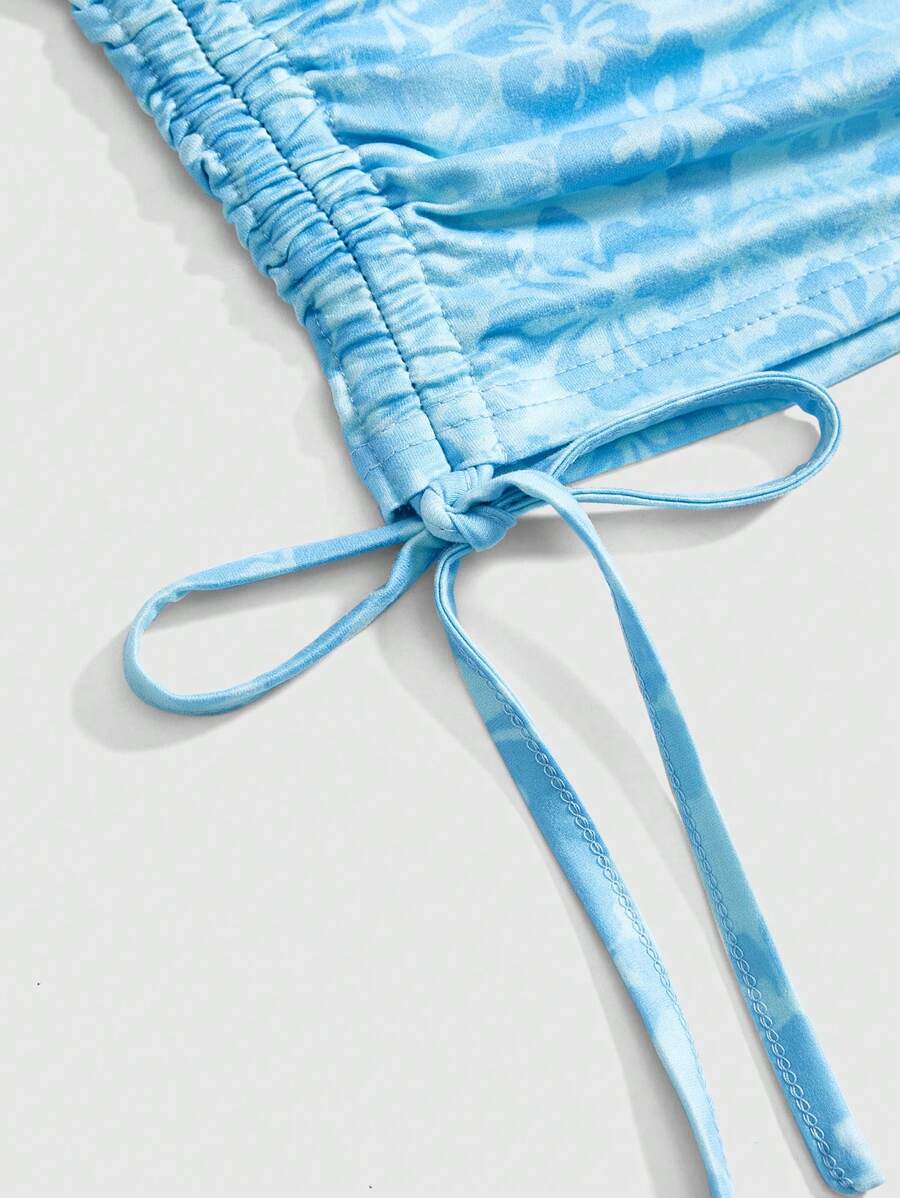 ROMWE Avant Top tubo para mujer con decoración de cristales y estampado tropical de hibisco