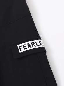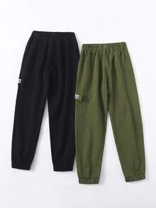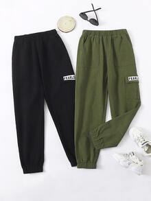 Paquete de 2 pantalones con bolsillo con solapa y estampado de letras para niños preadolescentes