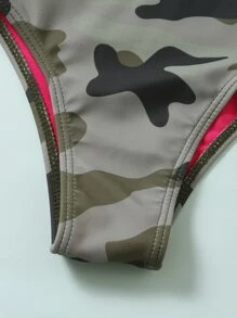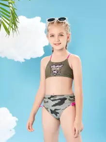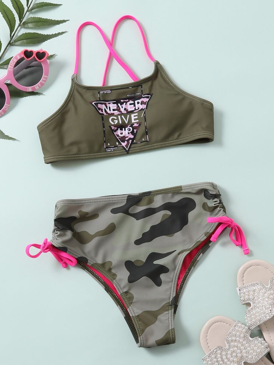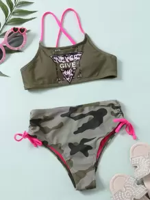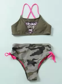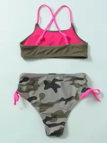 Conjunto de bikini de camuflaje con cordón lateral para niña preadolescente, playa de verano