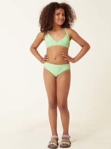 Conjunto de bikini sólido para niña preadolescente, playa de verano