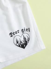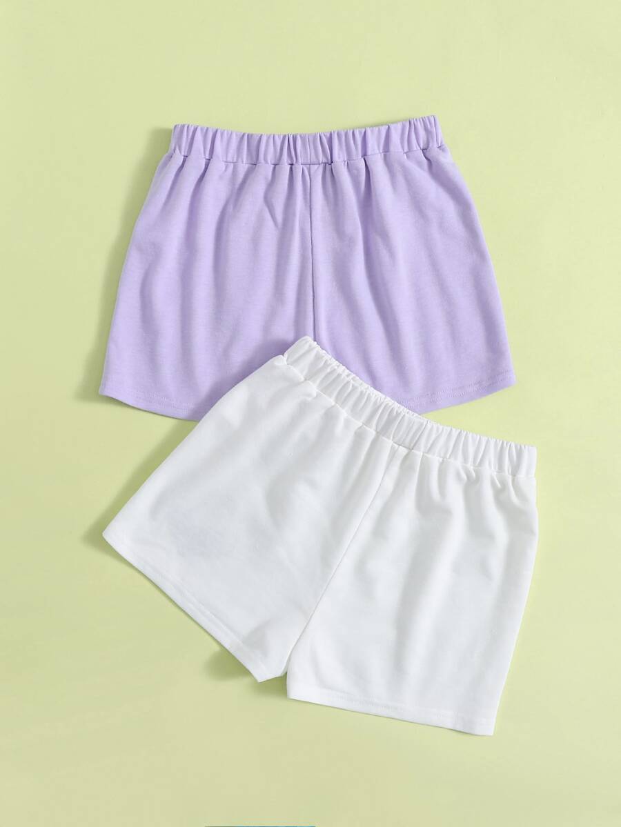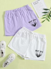 Paquete de 2 shorts deportivos con gráfico de letras para niñas preadolescentes