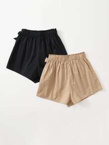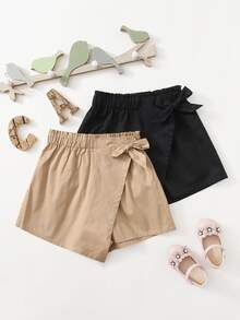 Set de 2 faldas pantalón con pretina tipo paperbag y nudo para niñas preadolescentes