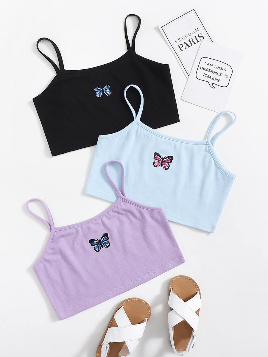 Paquete de 3 tops de cami bordados con mariposas para niñas preadolescentes